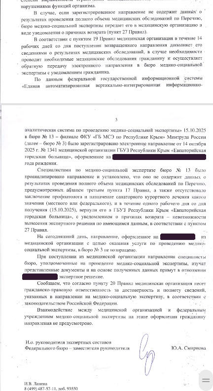 Цитата А без него документы возвращают в поликлиннику Вы получили официальный письменный ответ из ФБМСЭ за подписью и.о. руководителя экспертных составов ФБМСЭ.
